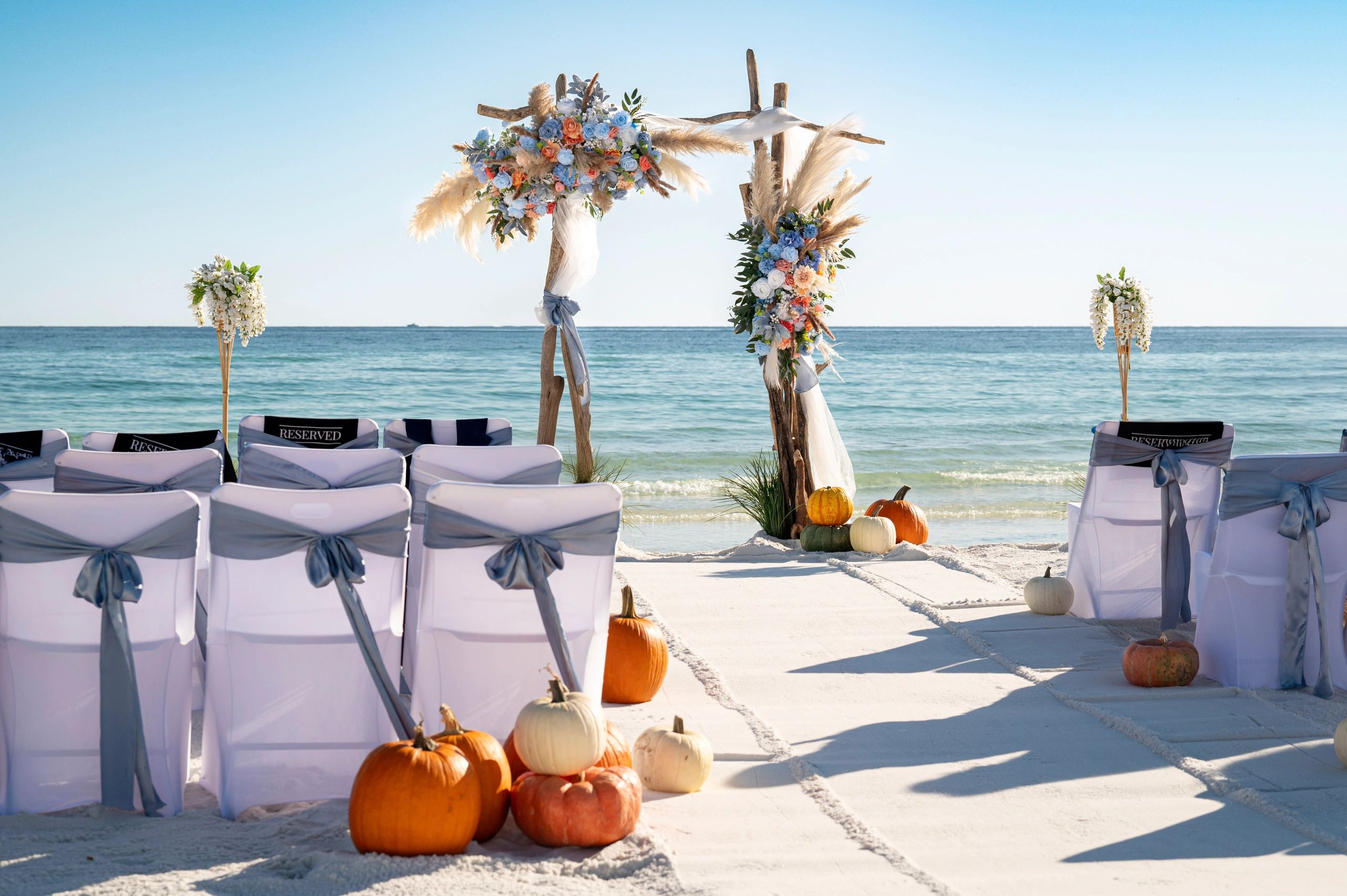 From sunset beach elopements to grand waterfront celebrations, we handle everything—ceremony setup, floral arrangements, décor, officiants, photography, videography and more—so you can enjoy a stress-free, unforgettable wedding experience. Whether you want a boho beach wedding, a luxury coastal ceremony, or a simple barefoot vow exchange, our expert team ensures that every detail is perfect.